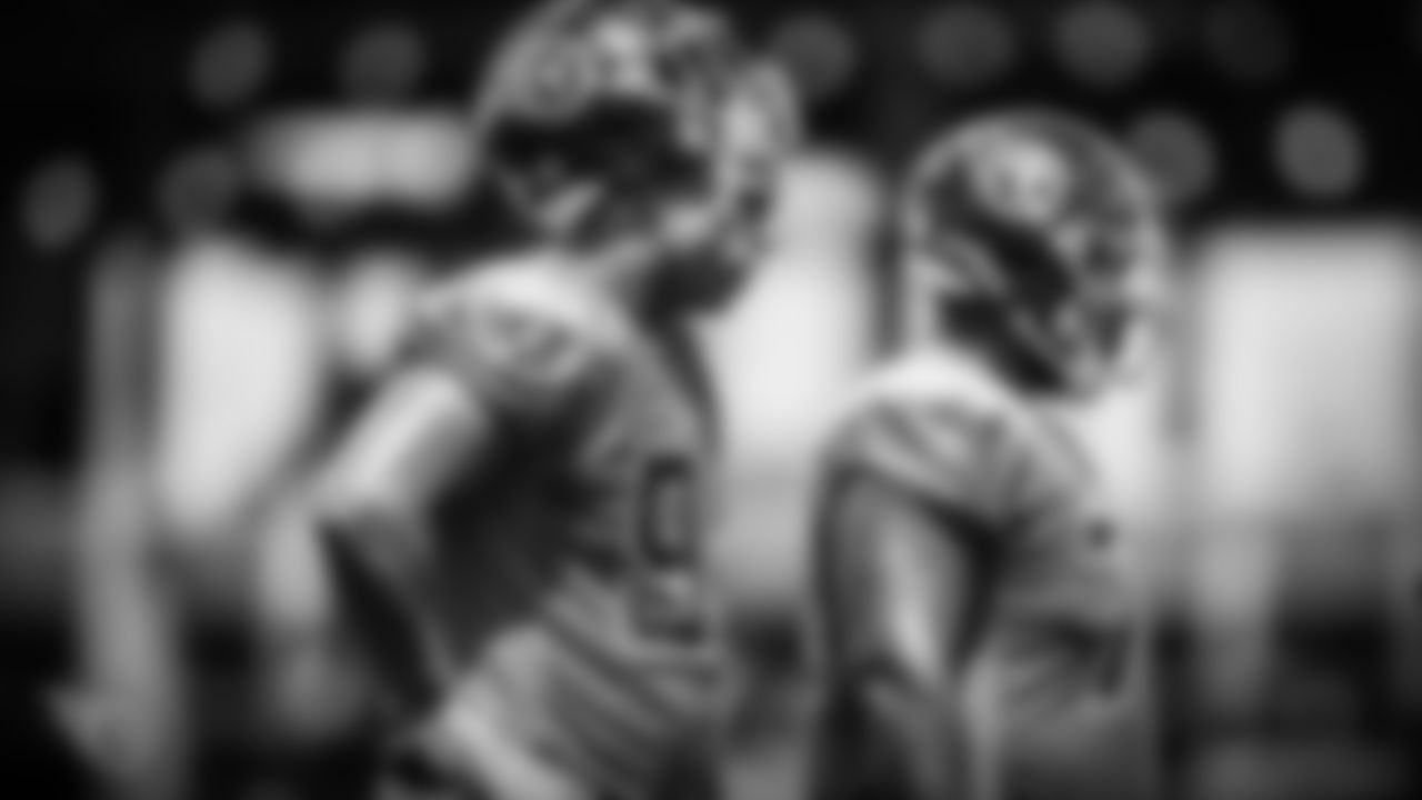 NASHVILLE, TN - AUGUST 23, 2020 - Defensive lineman DaQuan Jones #90 of the Tennessee Titans and Defensive lineman Jeffery Simmons #98 of the Tennessee Titans during practice at Saint Thomas Sports Park in Nashville, TN. Photo By Donald Page/Tennessee Titans