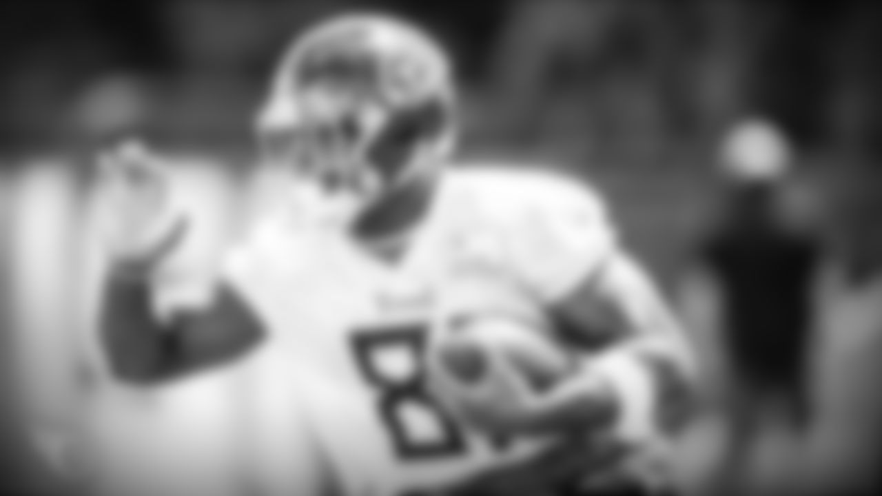NASHVILLE, TN - AUGUST 23, 2020 - Tight end MyCole Pruitt #85 of the Tennessee Titans during practice at Saint Thomas Sports Park in Nashville, TN. Photo By Donald Page/Tennessee Titans