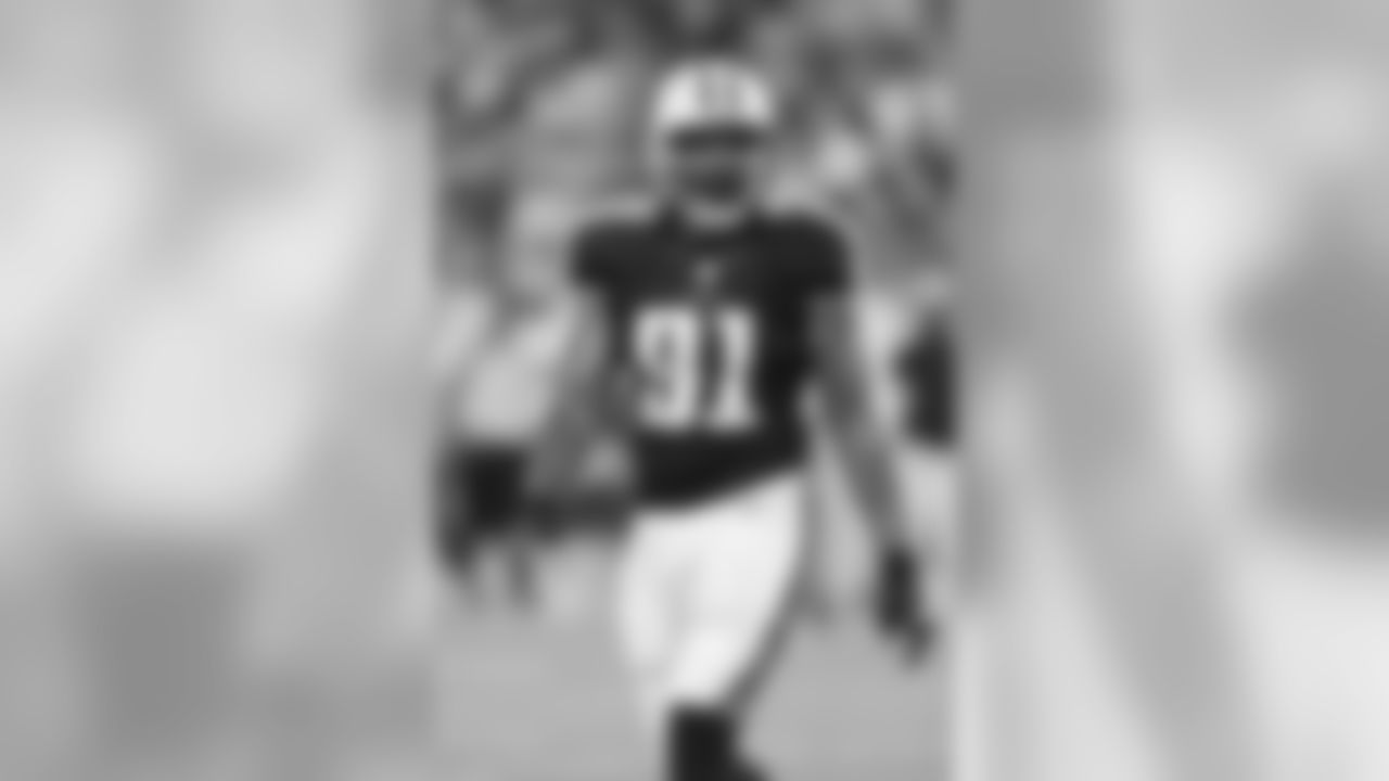 Tennessee. Titans linebacker Derrick Morgan (91) is shown during player introductions before the game against the Houston Texans Sunday December 3, 2017 in Nashville, Tennessee. (Damian Strohmeyer via AP)
