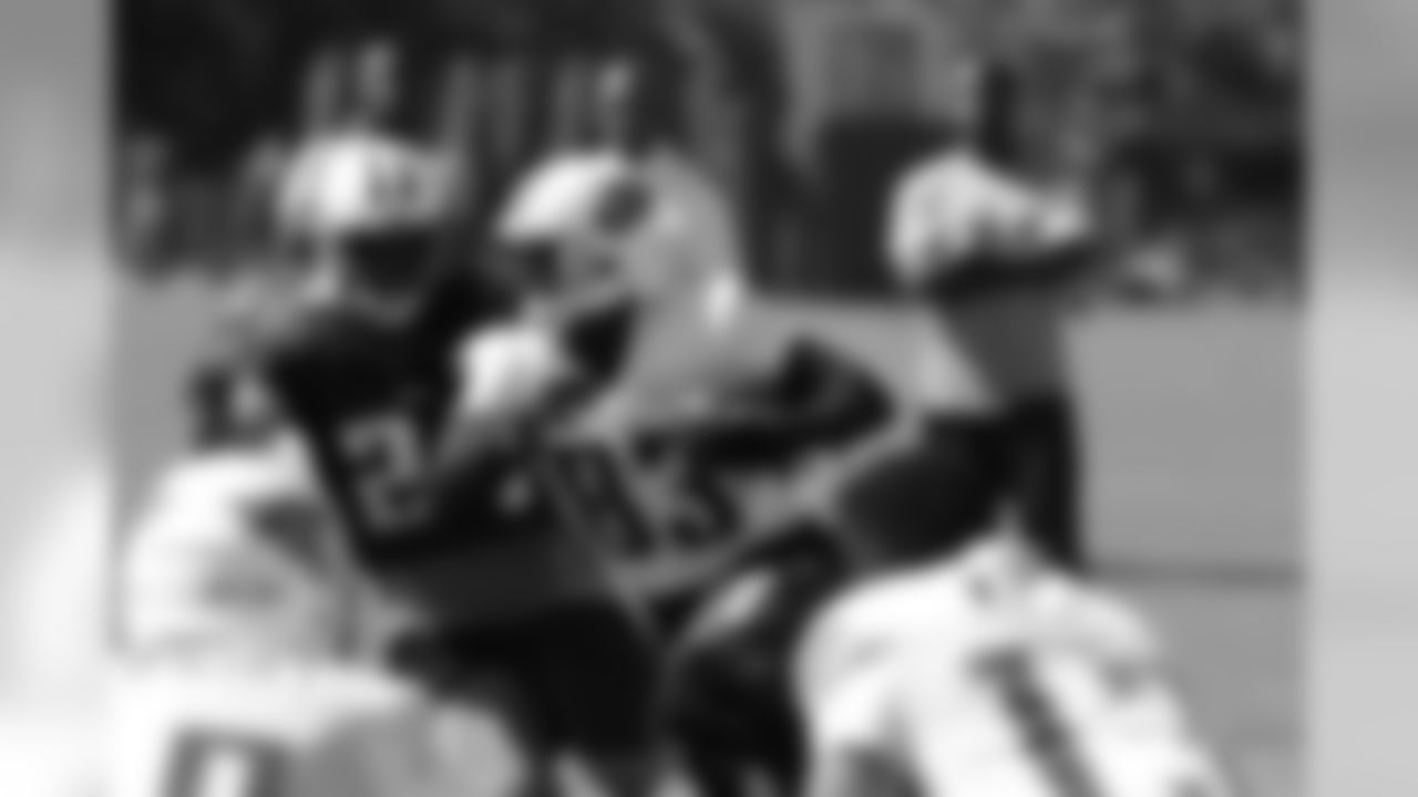 Mariota completed 13-of-18 passes on the day in team and 7-on-7 drills combined. He threw a deep ball for a touchdown to receiver Justin Hunter earlier in practice, and also connected with receiver Dorial Green-Beckham on a ball downfield. He threw a tight spiral across the middle to Kendall Wright, and connected with receiver Hakeem Nicks on a nice ball later in practice.