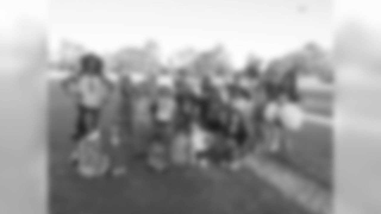 Our last thing on today was a cheer and football clinic! The NFL cheerleaders taught the servicemen and women's daughters a few of our dances we perform on the sidelines during games, while the fathers worked with their sons. Â After our clinic some of the older kids and adults played a quick game of flag football!