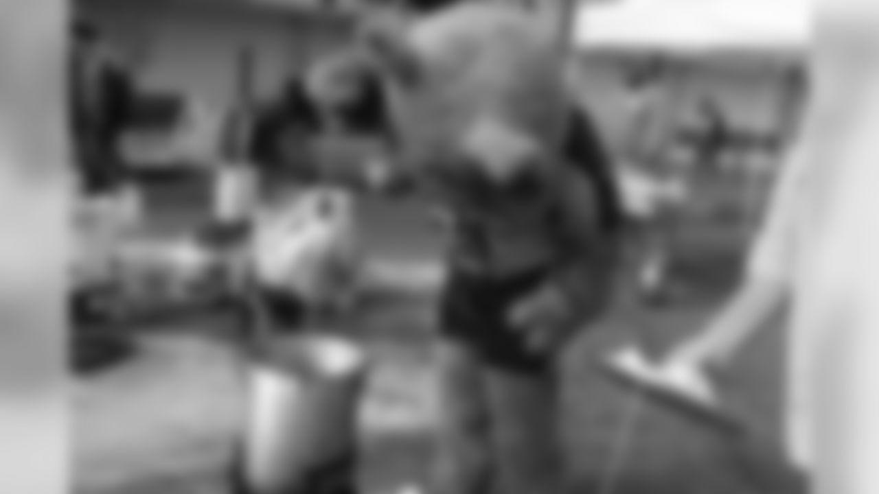 "This is the community we live in,'' Tuggle said. "We pass by here on Sundays going to a game, so being able to come out here and provide food and gloves and hats and scarfs is meaningful, and it shows the organization has a heart for the community we live it.